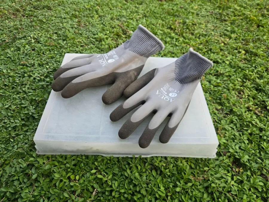 厚手の手袋はホームセンターで手に入りますが、私は写真の手袋をワークマンで購入しています。