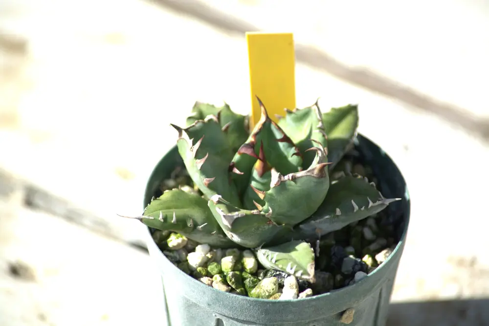 成長すると先が鋭くとがり、縁にトゲをもつ肉厚な葉をまとった「ロゼット」を形成していきます。