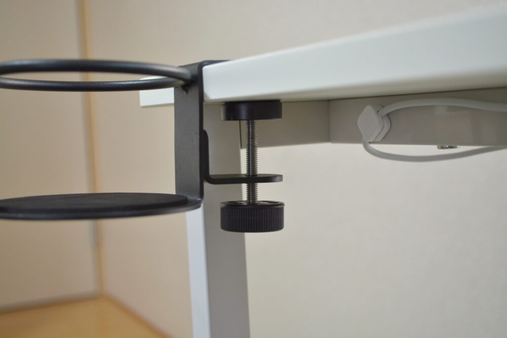 ニトリ ドリンクホルダーは机の厚みによりますが、他の製品よりも短め。
