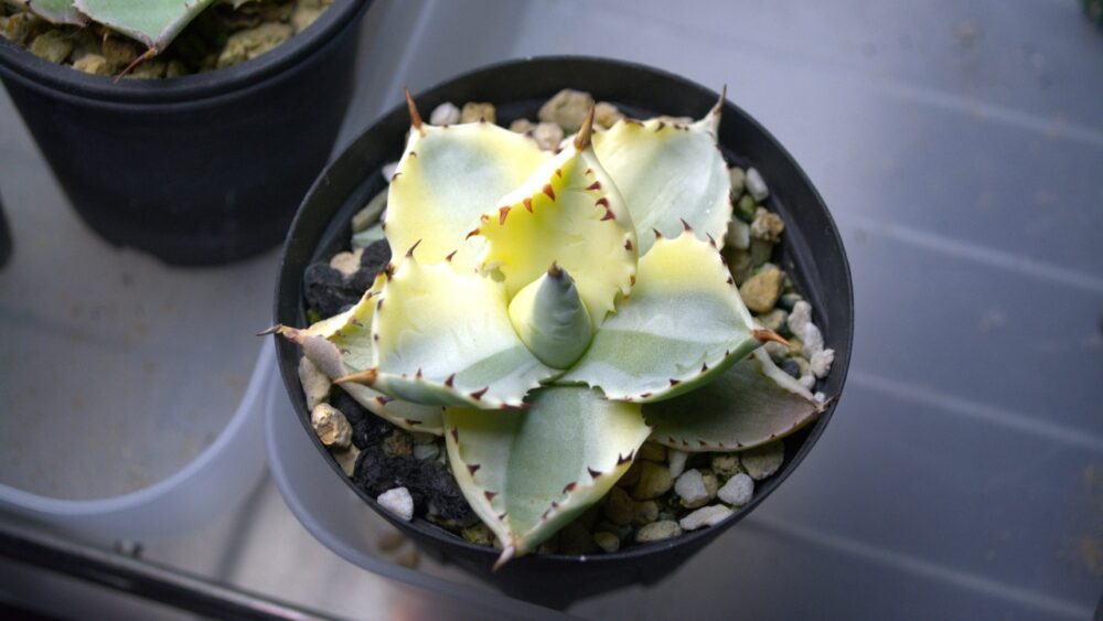 これは狙った訳ではないけど、子株の吹いた位置によっては変わった特徴の斑になるんだね。
